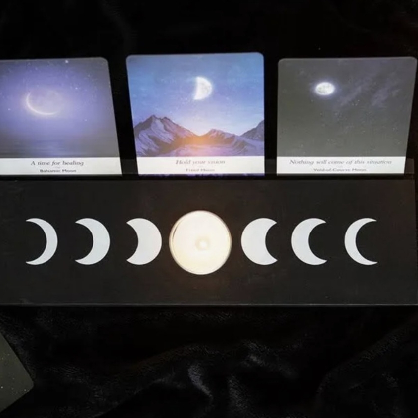 Black Moon Phase Tarot Card Stand Tealight Holder