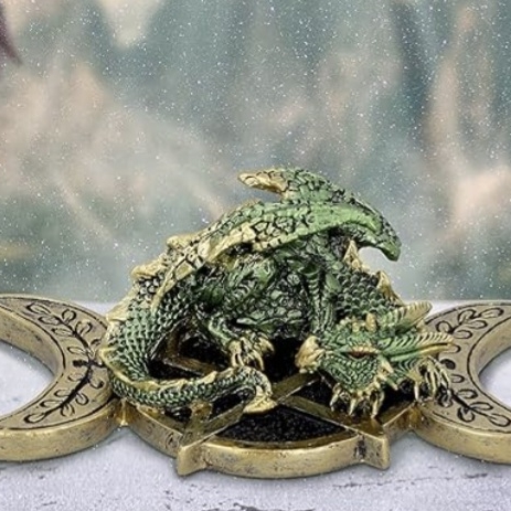 A detailed triple moon design featuring a majestic dragon, crafted from durable resin for long-lasting use. This unique piece is a striking addition to any mystical or fantasy-inspired decor.
